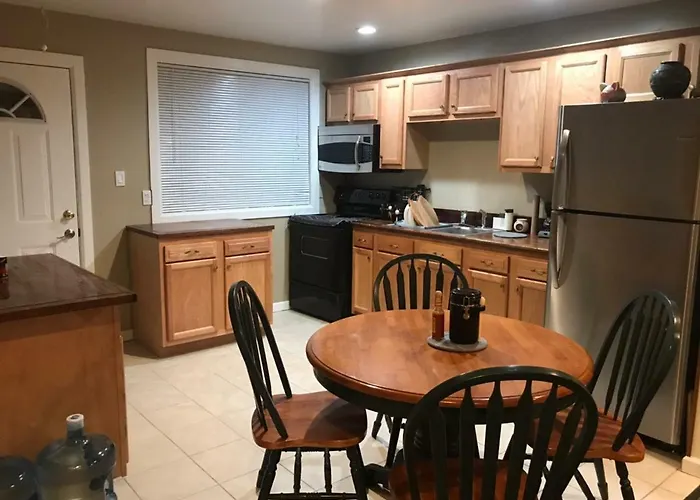 Eine komplette Küche bietet eine Mikrowelle, eine Kaffee-/Teemaschine und einen Toaster für den Komfort der Gäste. Das Restaurant Cyd's Gourmet Kitchen bietet Gerichte der amerikanischen Küche und liegt etwa 17 Gehminuten von hier entfernt. Von der Villa sind es 20 Minuten mit dem Auto zum Flughafen General Wayne A. Downing Peoria International.
